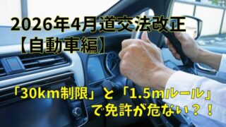 Uncategorized 2026年4月道交法改正【自動車編】|「30km制限」と「1.5mルール」で免許が危ない?!