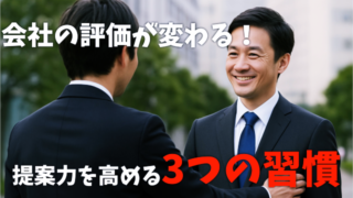 サラリーマン 会社の評価が変わる!提案力を高める3つの習慣 はじめに「会社にどうすれば評価されるのか」──これは多くのサラリーマンが抱える永遠の課題です。私も長年、評価されるための働き方を試行錯誤してきましたが、結果として評価が変わったのは「提案の質」を上げる習慣を持ったときでした。本記事では私が実... 2025.09.18 サラリーマン