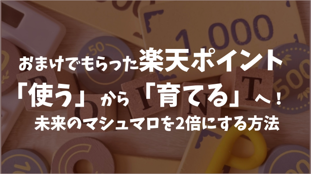 今回は、その泡銭を「将来の大きなマシュマロ」に変えるため、私がやっている楽天ポイントでの投資をこの記事を読んでいただいているあなたへ公開します。